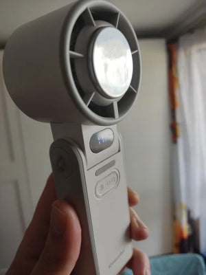 It has 3 adjustable speeds for instant air-flow. Ultra-compact fold-and-go and can hold up to 5 hours runtime per charge.